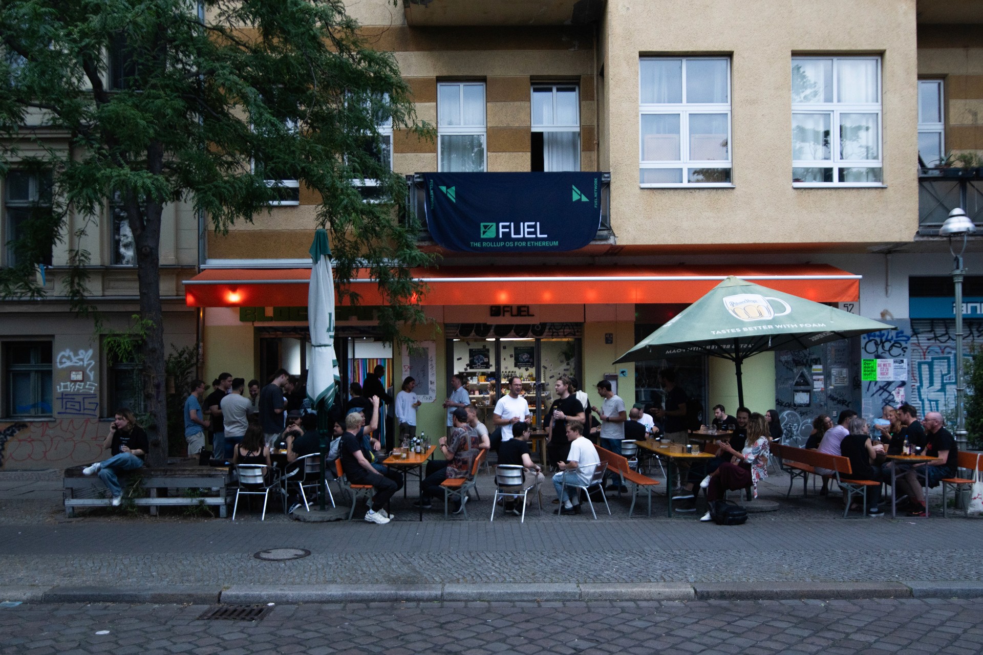 The first and only crypto convenience market in true Berlin style featured a secret entrance and branded ZK Club Mate bottles leading to the event space and speakeasy bar. Guests could browse merchandise as if they were in a real-life minimarket. Berlin is renowned for its late-night shops and underground scene. We combined the best of both worlds by creating a hidden crypto Späti in front of a bar, built entirely from scratch. From designing the storefront with iconic Späti stickers, ZKsync Club Mate bottles, a fake cash register, and an authentic vibe, every detail was crafted to capture the spirit of Berlin.